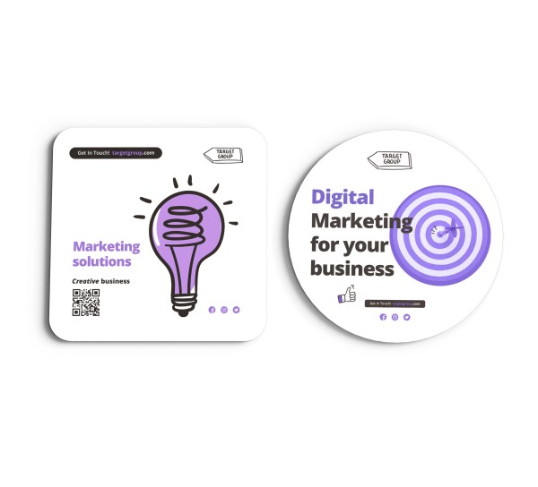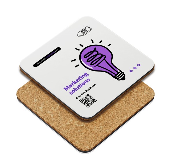Printed promotional drink coasters produced with a high-quality laminated print surface mounted onto rigid black Eska® board and finished with a natural cork backing. Eskaboard is made from 100% recycled materials.